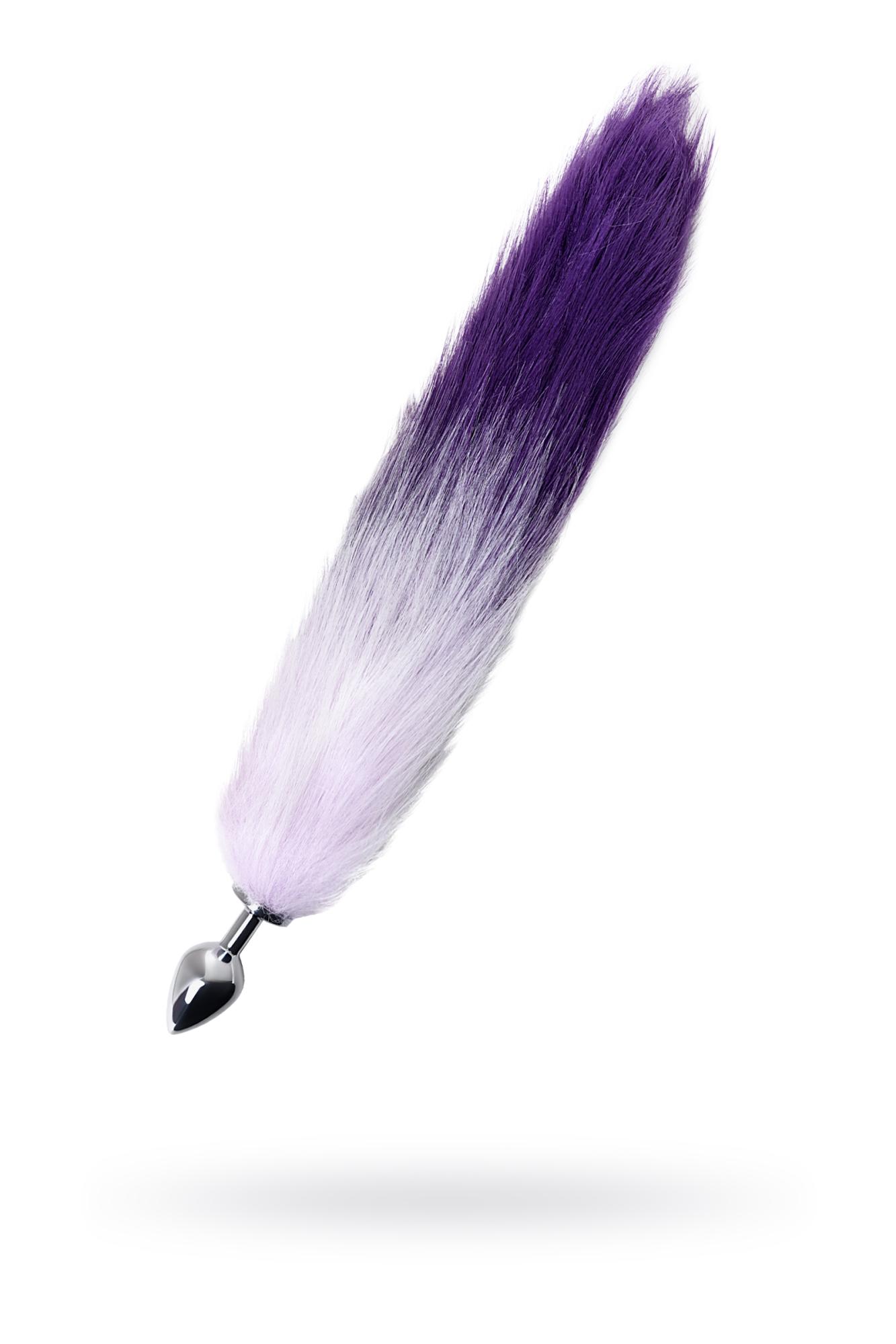 Анальная втулка Metal by TOYFA с бело-фиолетовым хвостом, металл, серебряная, 45 см, d 2,7 см (0T-00