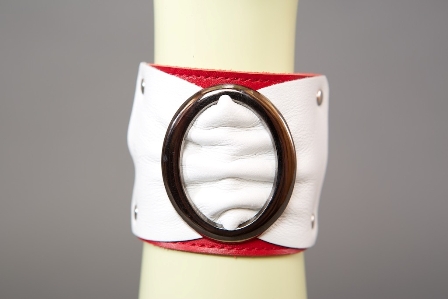 Браслет красно-белый с овальной пряжкой шир. 6 см. (P0911)