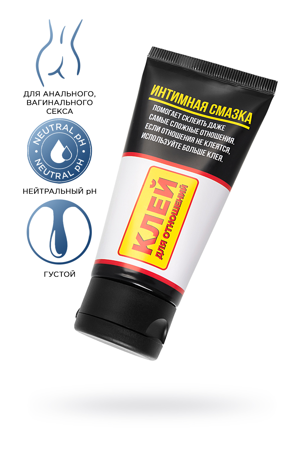 В паре произошел разлад? На помощь придет Клей для отношений”. Отношения охладели? Клей для отношений” поможет их оживить. Клей для отношений” - это интимный лубрикант, помогающий склеить и укрепить отношения. Качественный, безопасный состав повышает уровень комфорта и удовольствия в интимной близости. Яркая упаковка с оригинальным дизайном не только имеет привлекательный вид, но и гарантированно помогает разрядить обстановку и наладить контакт. Упаковка стилизована под тюбик клея. На лицевой стороне присутствует шуточная инструкция по применению. Клей для отношений” может стать отличным подарком для половинки по поводу и без повода. Сертифицированный товар производится в России и имеет уникальный состав, не нарушает pH баланс естественной флоры. Достойная цена и высокое качество лубриканта на водной основе сделали его востребованным среди мужчин и женщин.