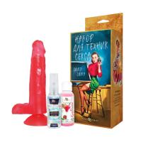 Набор для техник секса (фаллоимитатор гелевый, лубрикант клубничный, очищающий спрей) (311-06-3)