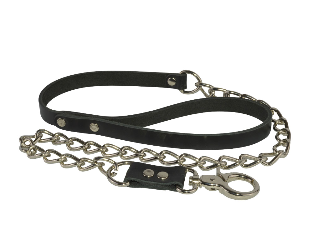 Надежный поводок цепь с круглым карабином подходит для любого шейника с уольцом.